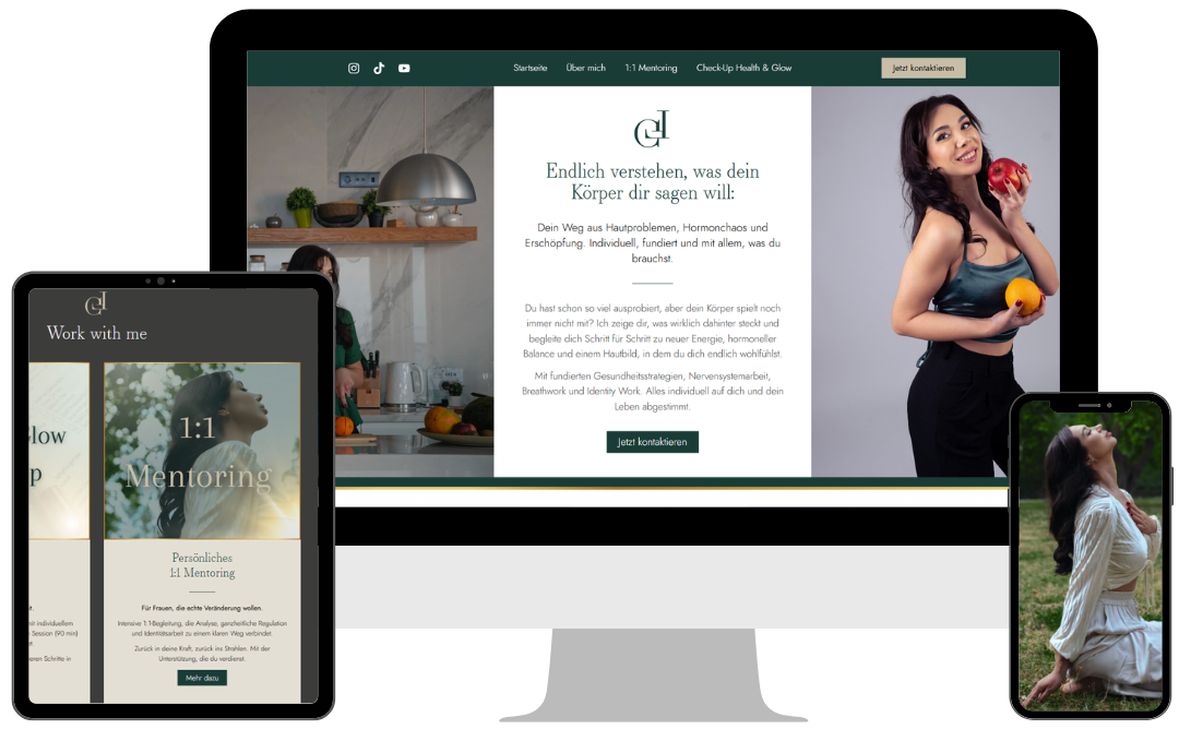 Diese vollständigen Webseiten habe ich persönlich für meine Kundinnen und Kunden aufgebaut. Natürlich wandeln sie sich im Laufe der Zeit, da ich nach dem Aufbau immer ein Tutorial dazu gebe, wie man seine Seite in Zukunft selbst weiter anpassen kann.